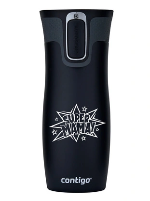Kubek termiczny Contigo West Loop 2.0 470 ml - Super Mama - czarny