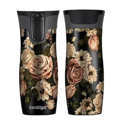 Kubek termiczny - Contigo West Loop 2.0 • 470ml • Glamour Kwiaty - czarny