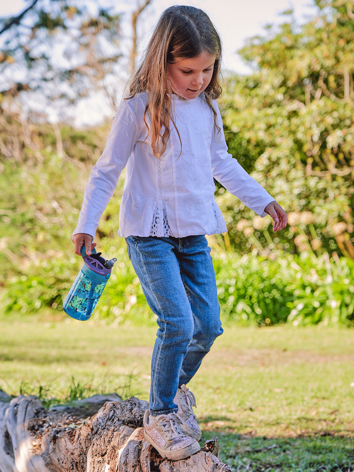 Aby otworzyć butelkę wystarczy nacisnąć jeden przycisk, który otwiera ustnik. Pije się z łatwością, szybko gasząc pragnienie. Zamykasz butelkę jedną rękę, chowając go pod osłonę ustnika. W 100% szczelne zamknięcie i 100% ochrona przed zabrudzeniami. Dzięki słomce wygodnie się pije bez przechylania np. podczas jazdy rowerem lub samochodem. Idealny na długi dzień w przedszkolu.
