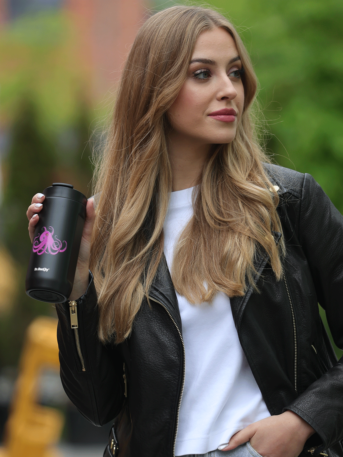 Kubek termiczny na kawę 2w1 Dr.Bacty Notus 360 ml - czarny - Octopus Magenta