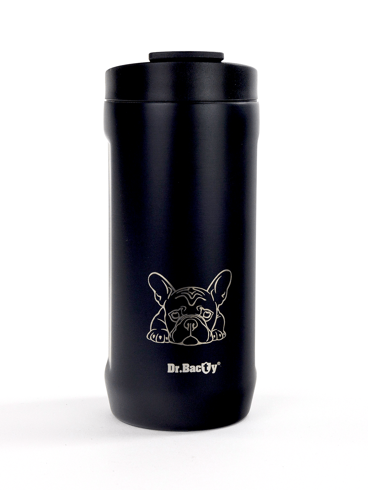 Kubek termiczny 2w1 Dr.Bacty Notus 360 ml - Buldog francuski - czarny