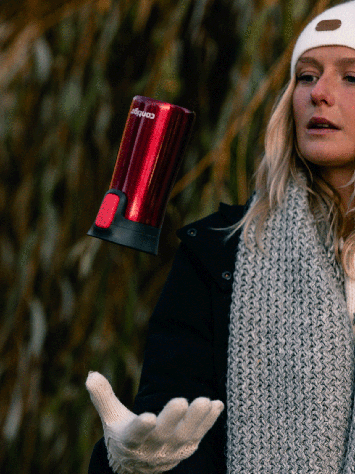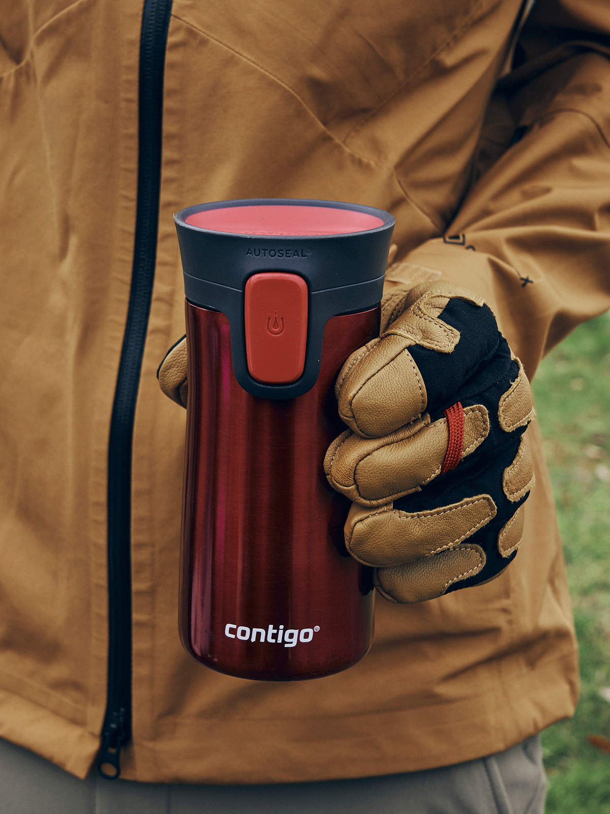 Chcesz napić się kawy, którą wlałeś do kubka Contigo Pinnacle? Naciśnij i przytrzymaj przytrzymaj przycisk AutoSeal wbudowany w boczną ściankę nakrętki, który zwolni blokadę ustnika. Zwolnij przycisk a blokada ponownie się uruchomi chroniąc napój przed rozlaniem. Dodatkowy przycisk blokady umieszczony w górnej części nakrętki zabezpieczy system przed ryzykiem przypadkowego otwarcia w Twojej torebce lub plecaku. Cały system blokowania spokojnie obsłużysz 1 ręką nawet podczas jazdy autem.