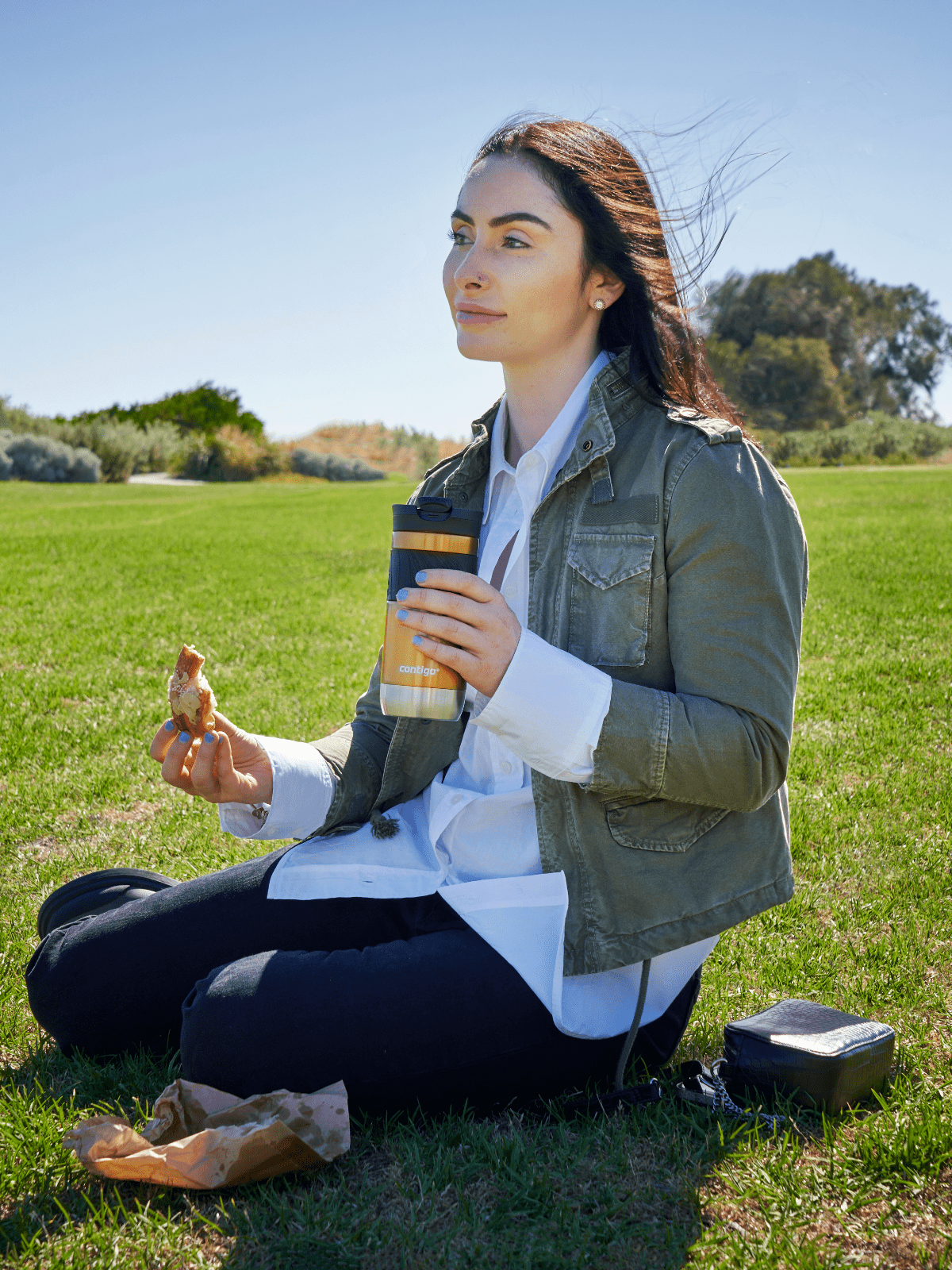 Jako pierwszą w serii Byron 2.0 Contigo na warsztat wzięliśmy silikonową osłonę znajdującą się na górnej części kubka. Umieściliśmy na niej nieregularne, wypukłe linie o różnej wielkości. Dzięki nim nawet wtedy, gdy Twoje dłonie są wilgotne,kubek termiczny Contigo Byron nie wyślizgnie Ci się z rąk.