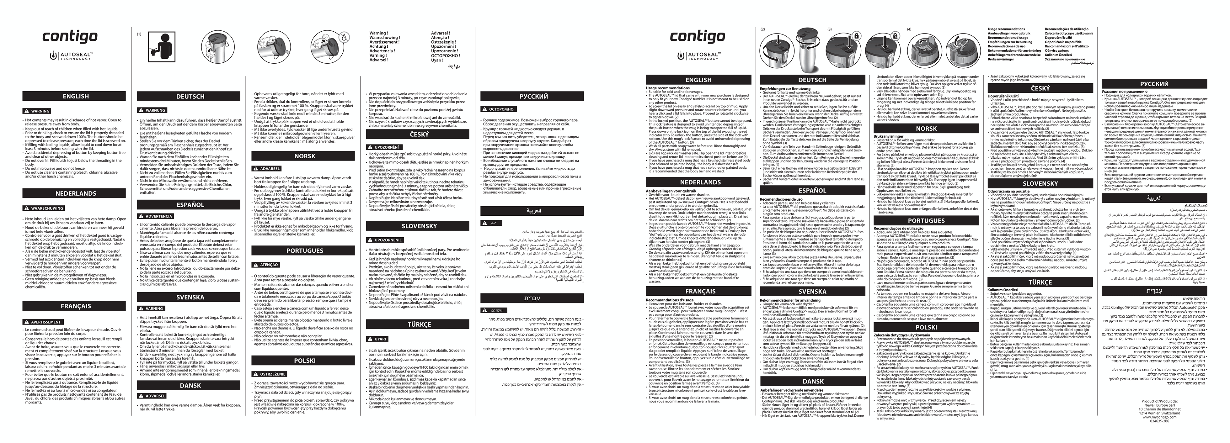 - Przed przystąpieniem do picia picem, sprawdzić, czy pokrywa jest właściwie nakręcona na korpus i dokręca w 100%. Przycisk powinien być wciśnięty przy każdym dokręceniu pokrywy, aby uwolnić ciśnienie.