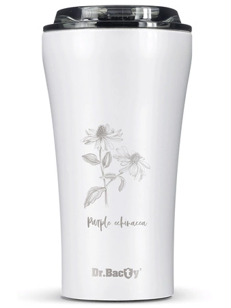 Kubek termiczny na kawę Dr.Bacty Apollo 2.0 360 ml "Jeżówka purpurowa" - Biały
